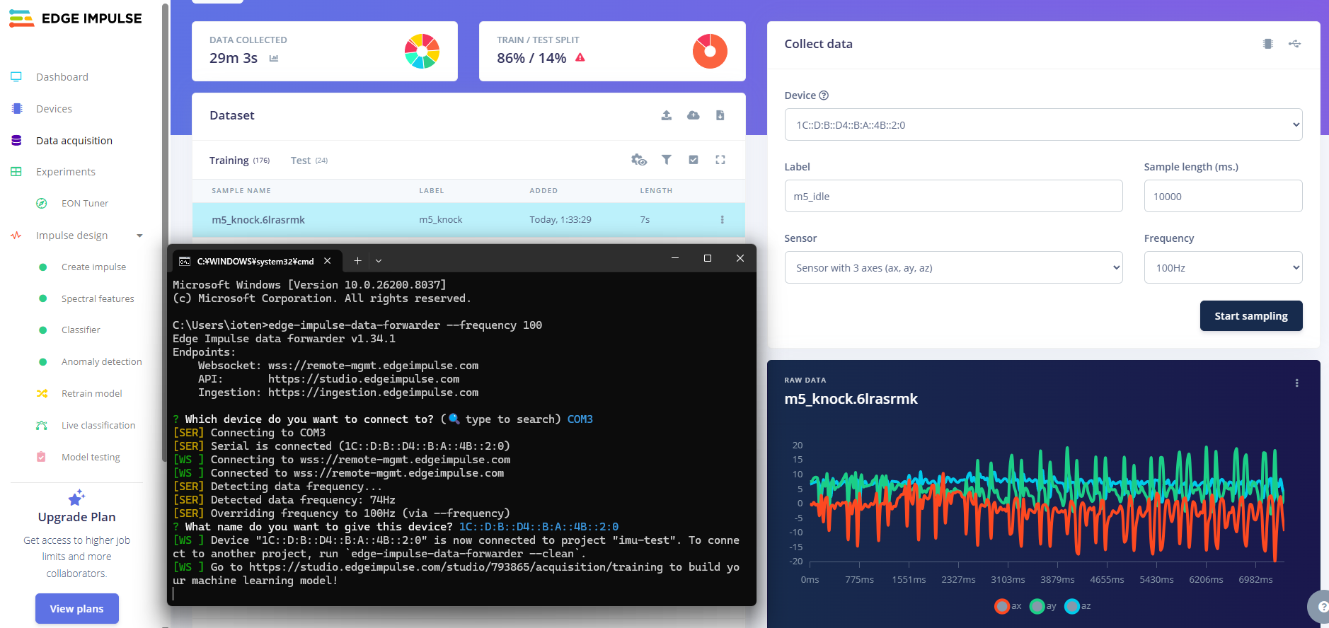 実際のEdge Impulseのデータアップロード