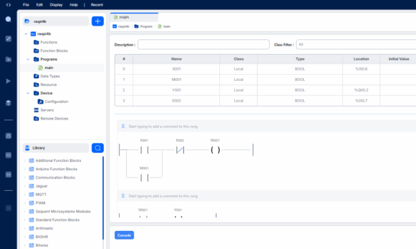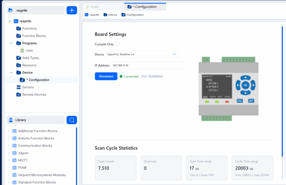 GPIO(ハードウェア): v4 には現時点で Raspberry Pi の GPIO 用のネイティブ・ドライバが実装されていません。 開発元(Thiago氏)によると、v4 は「リアルタイム vPLC(仮想PLC)」としての機能を優先しており、物理 I/O の直接制御はまだ開発のロードマップ段階、あるいは Python 関数ブロックを通じた実装が推奨されています。