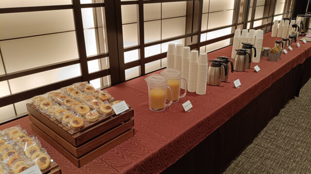 朝の無料コーヒーも置いています。ありがたいです。