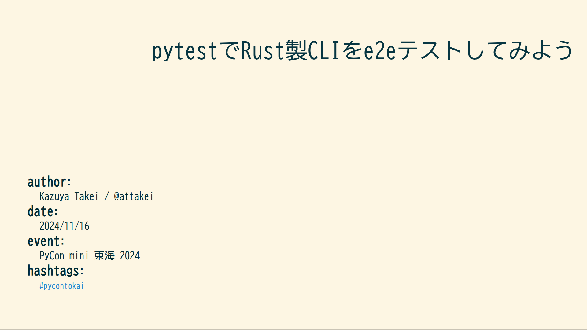 またRustのテストに対して、Pytest(Pythonのテストライブラリ)使う内容を紹介。