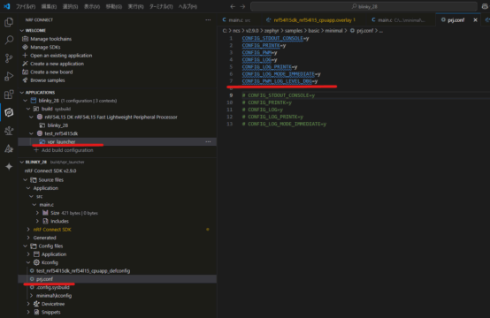ARM側については、デフォルトのKconfig設定(prj.conf)が最小限です。