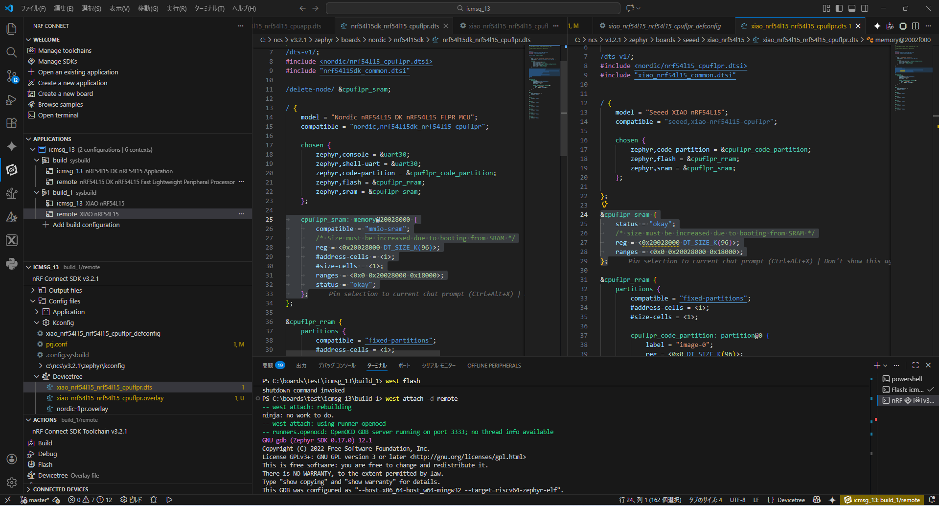 Xiao nRF54L15でRISC-VとIPC通信できなかった件を雑にメモ残しています。