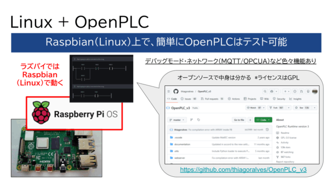ラズパイでOpenPLCを実装する場合には、Raspbian(Linux)上で動くことになります。