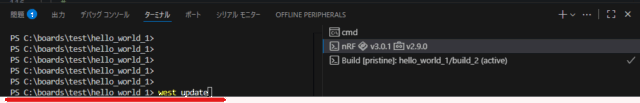 その後、nRF環境でwestをアップデートします。